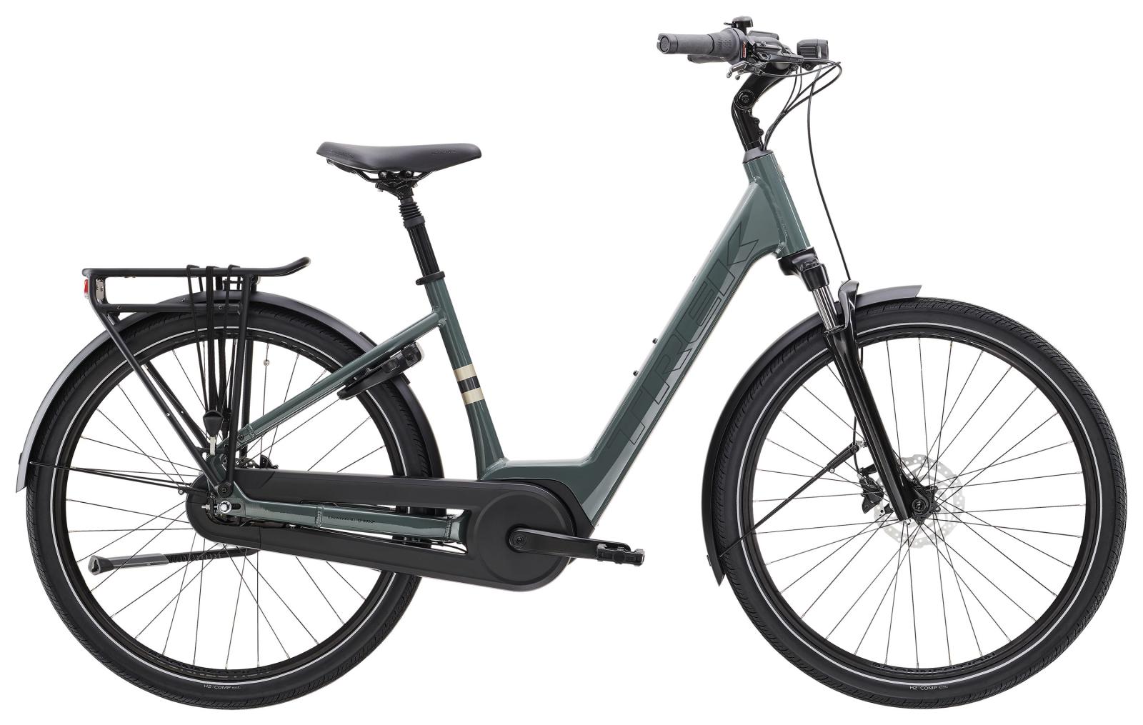 Einen leichten Lowstep-Rahmen aus Alpha Smooth Aluminium mit interner Zug-/Leitungsführung, einen Active Line Plus Motor von Bosch mit 250 W Leistung und 50 Nm Drehmoment zur Antriebsunterstützung bis 25 km/h, einen 400 Wh starken Bosch CompactTube Akku und einen Purion 200 Controller. Außerdem bekommst du eine wartungsarme Shimano Nexus 7-Gang-Nabenschaltung, eine gefederte Sattelstütze, eine Federgabel mit integriertem Scheinwerfer, leistungsstarke hydraulische Scheibenbremsen, ein Rücklicht, MIK-kompatible Heck- und -Seitengepäckträger, Schutzbleche, ergonomische Lenkergriffe und einen bequemen Sattel von Bontrager.
