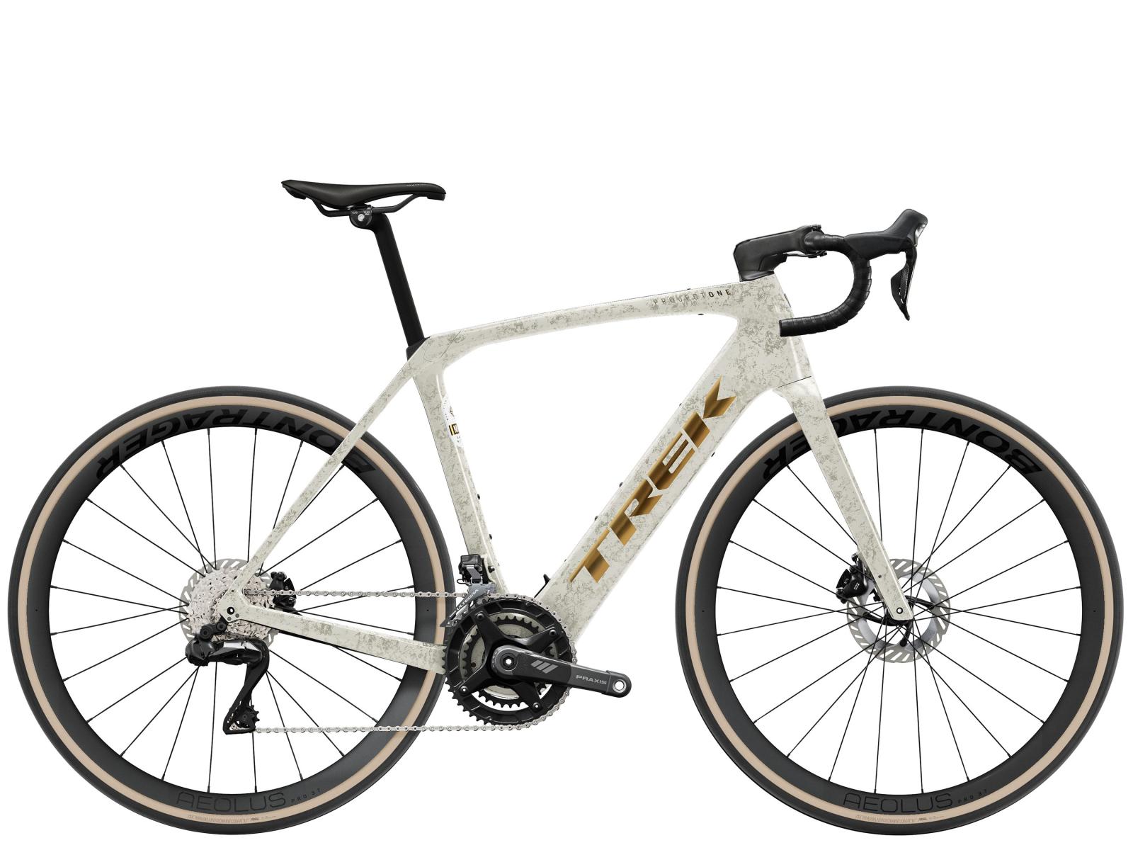 Einen Rahmen aus 800 Series OCLV Carbon mit hinterem IsoSpeed. Einen kraftvollen Harmonic Pin-Ring Motor von TQ mit einem Drehmoment von 60 Nm, der dich bis zu einer Geschwindigkeit von 25 km/h unterstützt, einen 360 Wh großen integrierten Akku, ein in den Rahmen integriertes, smartes LED-Display und diskret in die Bremsgriffgummis verbaute Bedienelemente für das Umschalten der Unterstützungsmodi. Aeolus Pro 37 Laufräder aus OCLV Carbon, eine drahtlose, elektronische Shimano Ultegra Di2 2x12-Schaltung, Carbonkurbeln, ein vibrationsdämpfender Bontrager Aero Pro Lenker und ein RCS Pro Vorbau mit vollständig integrierter Zugführung