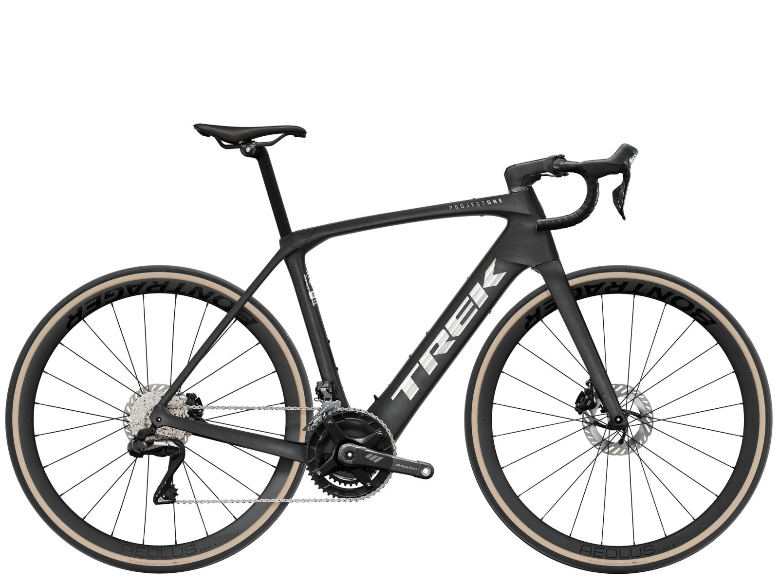 Einen Rahmen aus 800 Series OCLV Carbon mit hinterem IsoSpeed. Einen kraftvollen Harmonic Pin-Ring Motor von TQ mit einem Drehmoment von 60 Nm, der dich bis zu einer Geschwindigkeit von 25 km/h unterstützt, einen 360 Wh großen integrierten Akku, ein in den Rahmen integriertes, smartes LED-Display und diskret in die Bremsgriffgummis verbaute Bedienelemente für das Umschalten der Unterstützungsmodi. Aeolus Pro 37 Laufräder aus OCLV Carbon, eine drahtlose, elektronische Shimano Ultegra Di2 2x12-Schaltung, Carbonkurbeln, ein vibrationsdämpfender Bontrager Aero Pro Lenker und ein RCS Pro Vorbau mit vollständig integrierter Zugführung