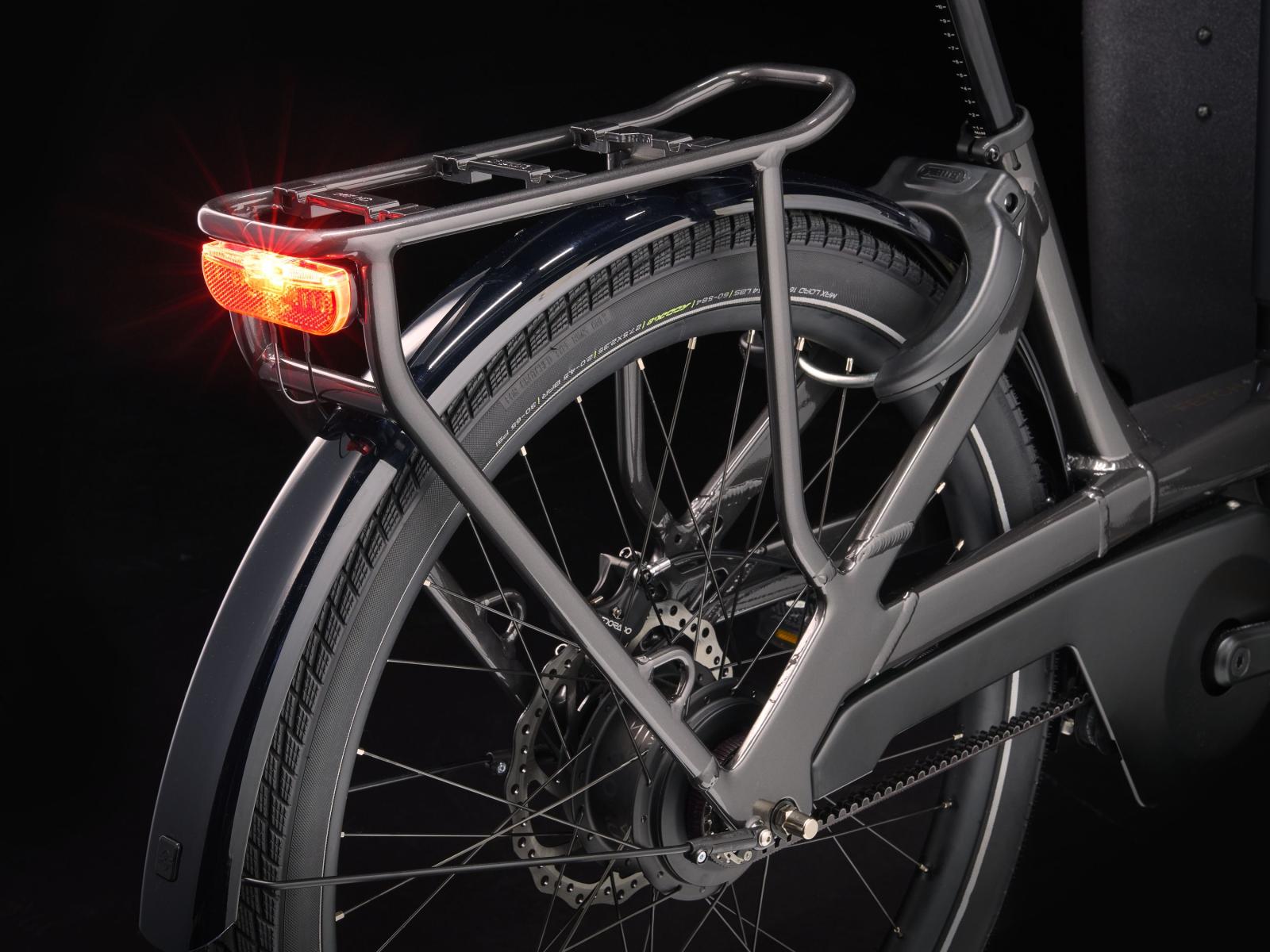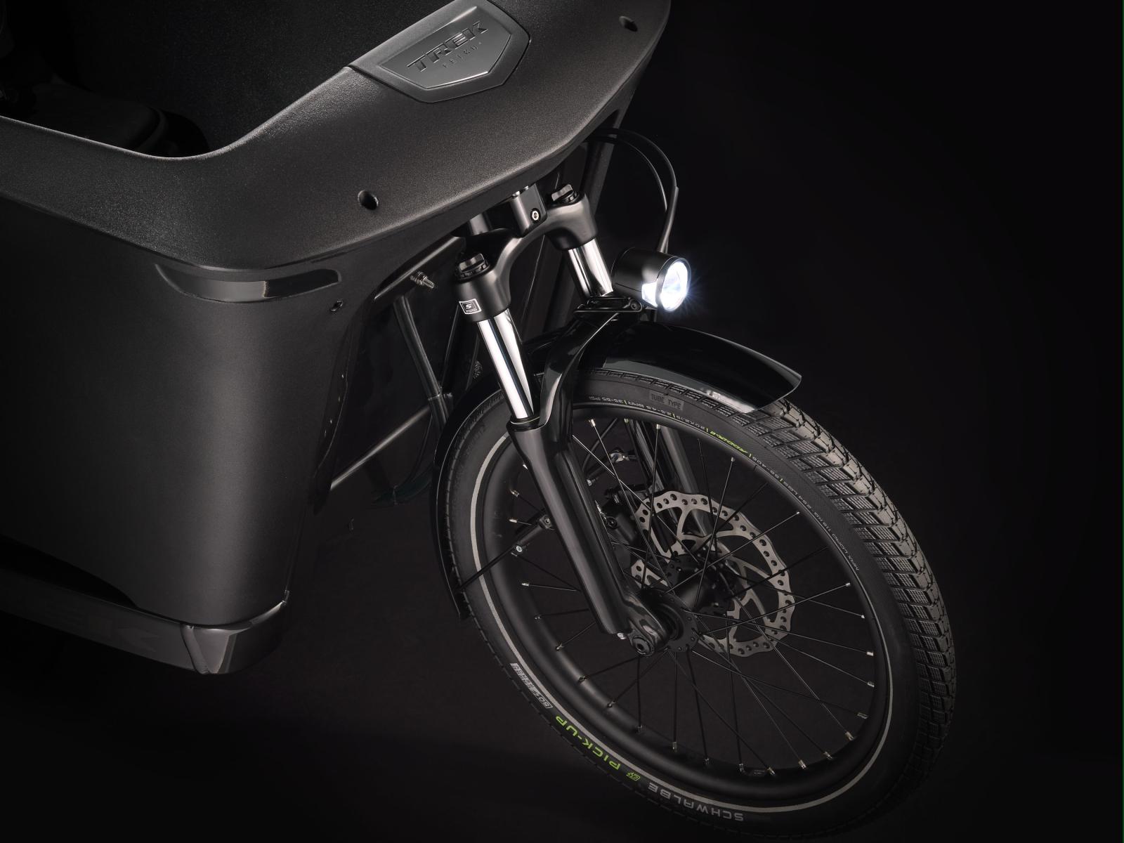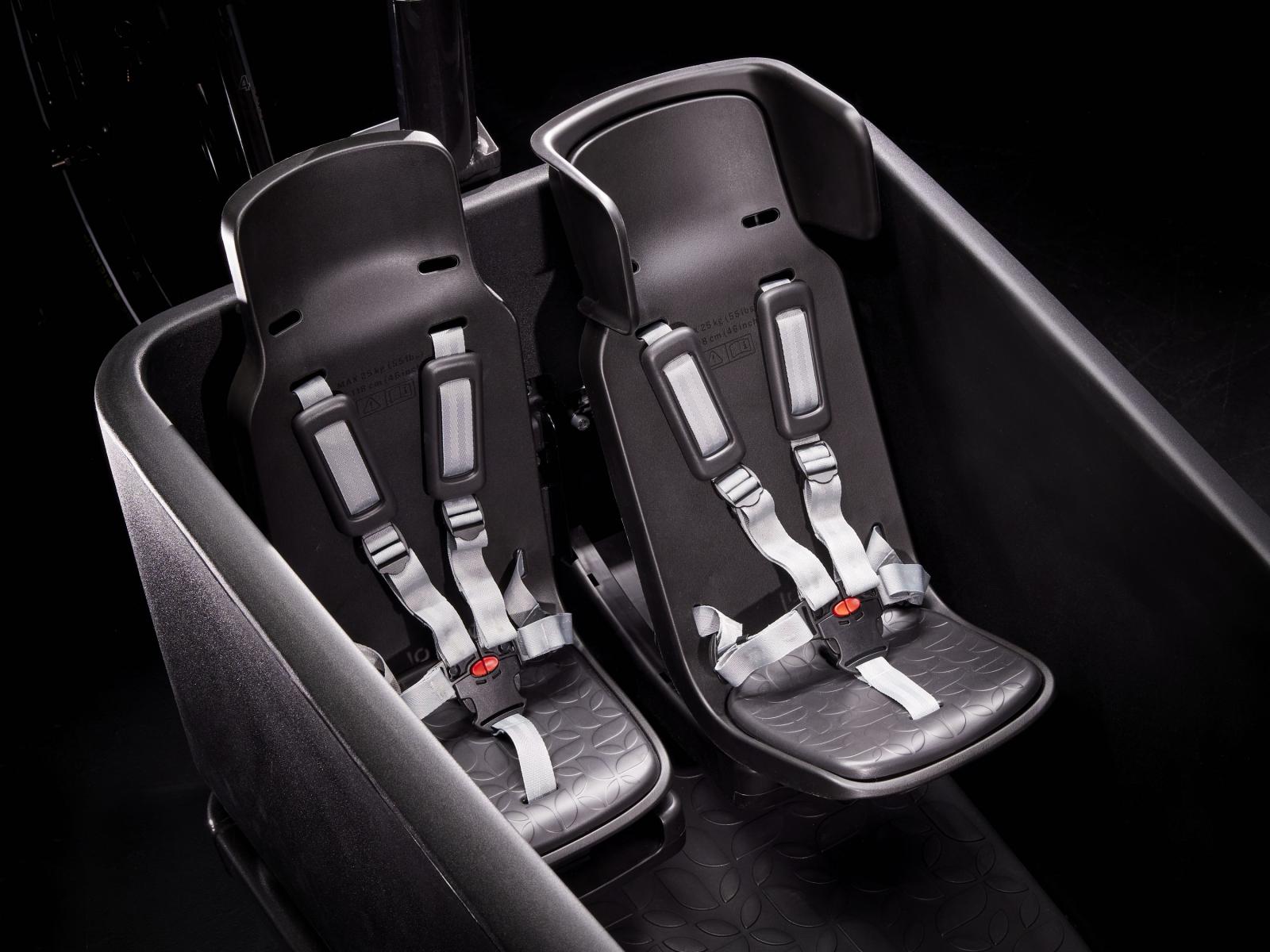 Einen robusten Aluminiumrahmen mit konfigurierbarer vorderer Transportbox samt Bank und zwei Kindersitzen. Einen Bosch Performance Line Cargo Smart System Motor mit 250 W Leistung und 85 Nm Drehmoment zur Antriebsunterstützung bis 25 km/h und einen 750-Wh-Akku. Einen Smartphone-Controller mit drahtloser Ladefunktion. Ein wartungsarmer Gates CDX Riemenantrieb mit einer Nabe mit stufenlosem Getriebe für nahtlose Schaltvorgänge. Eine Federgabel, hydraulische 4-Kolben-Scheibenbremsen, eine verstellbare Variosattelstütze, ein MIK HD Heckgepäckträger, ein stabiler Fahrradständer und ein Bosch ConnectModule für zusätzlichen Diebstahlsc