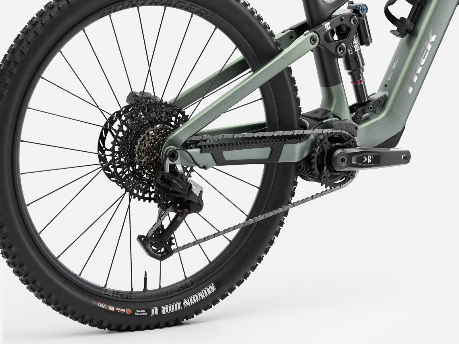 Rahmen: OCLV Mountain Carbon, herausnehmbarer Akku, verstellbarer Steuersatzwinkel, verstellbares Hebelverhältnis, geführte interne Zug- und Leitungsverlegung, austauschbare Aluminiumumlenkhebel, austauschbare untere Dämpferaufnahme, Unterrohrschutz, Shuttle-Protektor, ABP, UDH, Boost148, anpassbarer