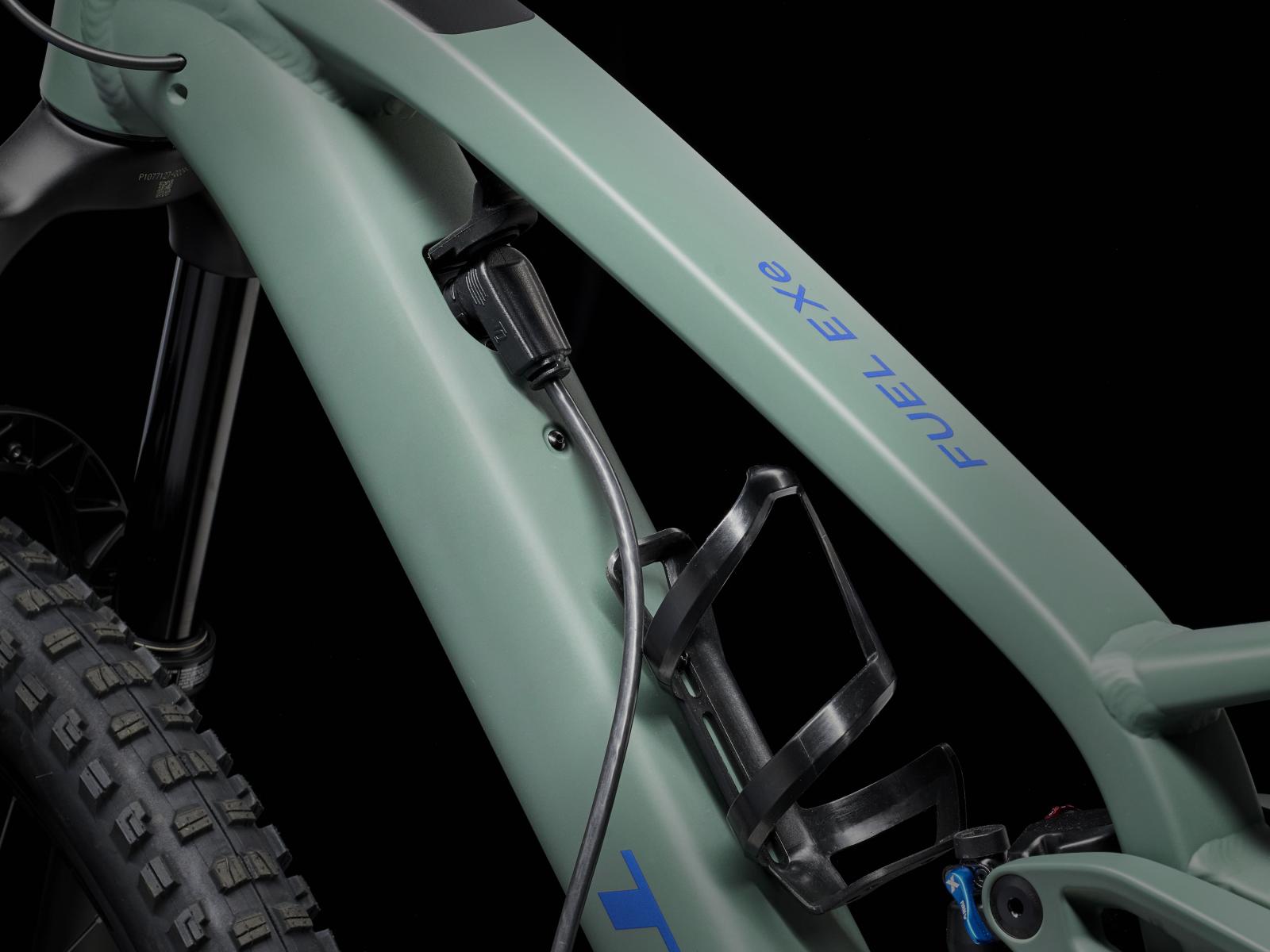 Einen Rahmen aus Alpha Platinum Aluminium mit TQ HPR50 Harmonic Pin-Ring Getriebe mit komplett im Rahmen verbautem, herausnehmbarem 360-Wh-Akku samt smartem Ladeanschluss. Gleichzeitig sorgen ein integriertes LED-Display und eine lenkermontierte Fernbedienung für intuitive Benutzungsfreundlichkeit, während eine FOX Rhythm 36 Gabel mit 150 mm Federweg, Float EVOL Luftfederung und GRIP-Dämpfung und ein FOX Performance Float X Hinterbaudämpfer mit 140 mm Federweg ein hochleistungsfähiges Fahrwerk bilden. Breite Bontrager Line Comp 30 Tubeless-Ready-Laufräder, SRAMs drahtlose GX AXS 12fach-Transmission, hydraulische Scheibenbremsen