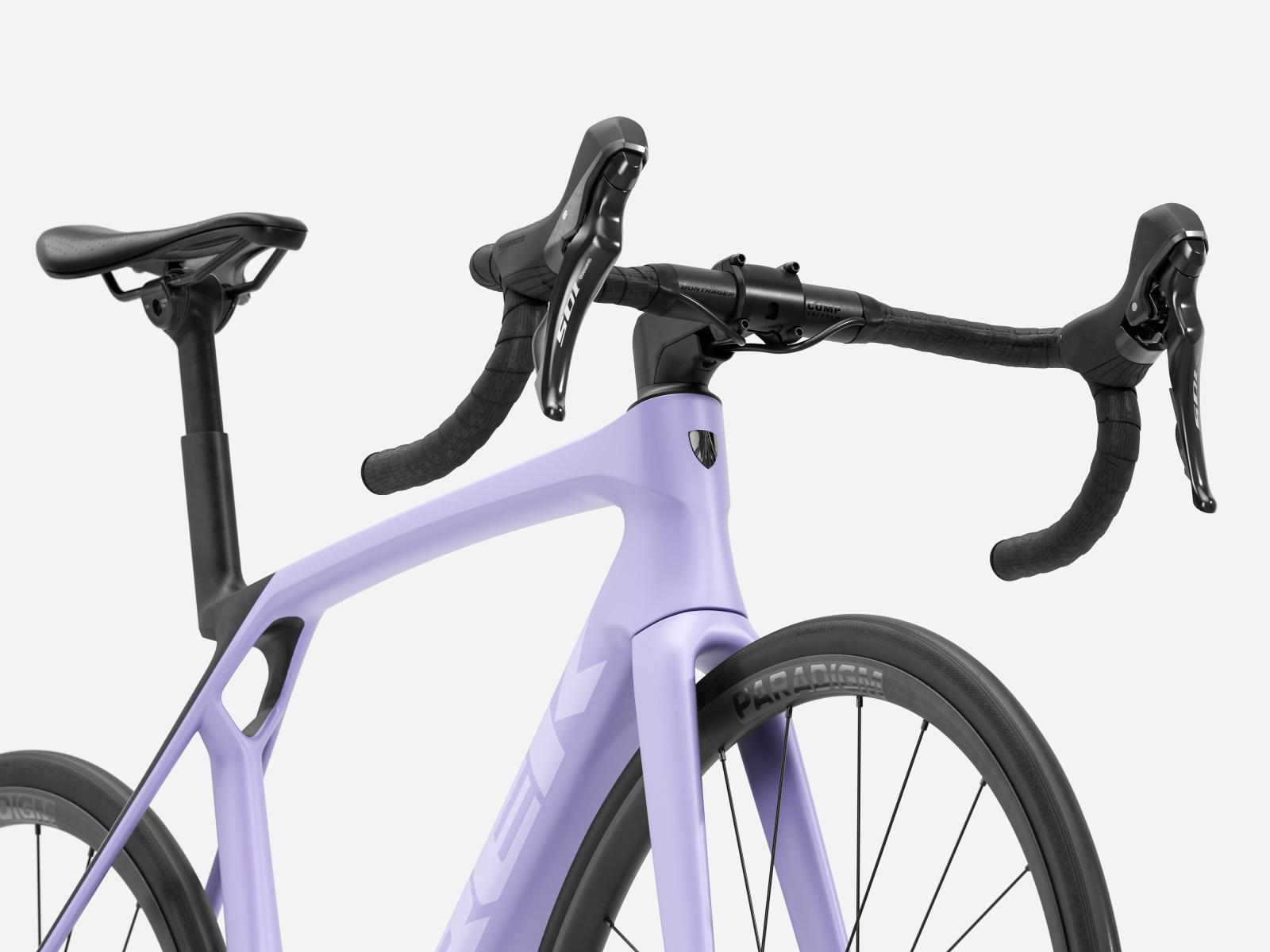 Der im Vergleich zum Unterlenker schmalere Oberlenker des Madone Gen 8 ermöglicht eine auf Aerodynamik oder Power optimierte Positionierung auf dem Bike. Und dank zweiteiligem Lenker/Vorbau-Design lässt sich die Passform schnell und einfach anpassen.