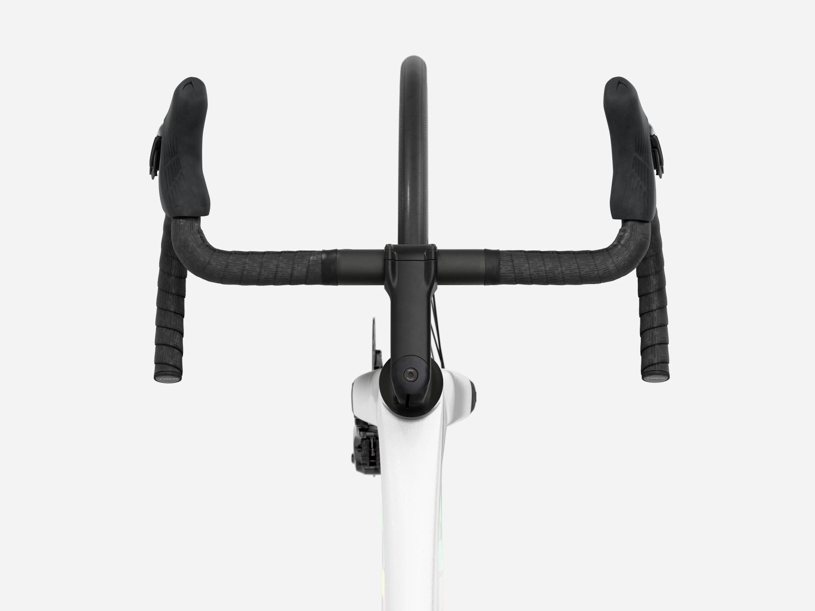 Der im Vergleich zum Unterlenker schmalere Oberlenker des Madone Gen 8 ermöglicht eine auf Aerodynamik oder Power optimierte Positionierung auf dem Bike. Und dank zweiteiligem Lenker/Vorbau-Design lässt sich die Passform schnell und einfach anpassen.