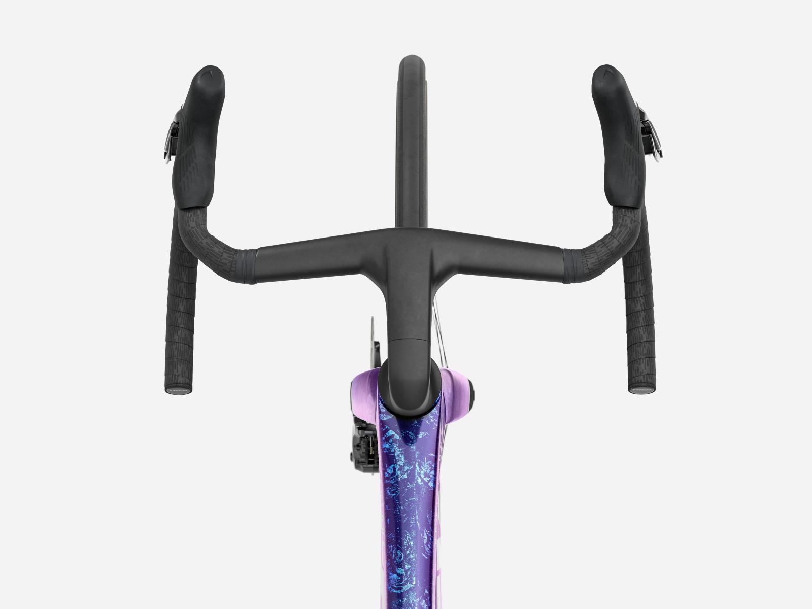Die neue einteilige Lenker/Vorbau-Einheit ist leichter, aerodynamischer und ergonomischer als die Vorgängerversion. Darüber hinaus ermöglicht der im Vergleich zum Unterlenker 3 cm schmalere Oberlenker die Anpassung der Positionierung auf dem Bike, um entweder in der Oberlenkerposition von einer besseren Aerodynamik zu profitieren oder im Unterlenker mehr Kraft aufs Pedal zu bringen.