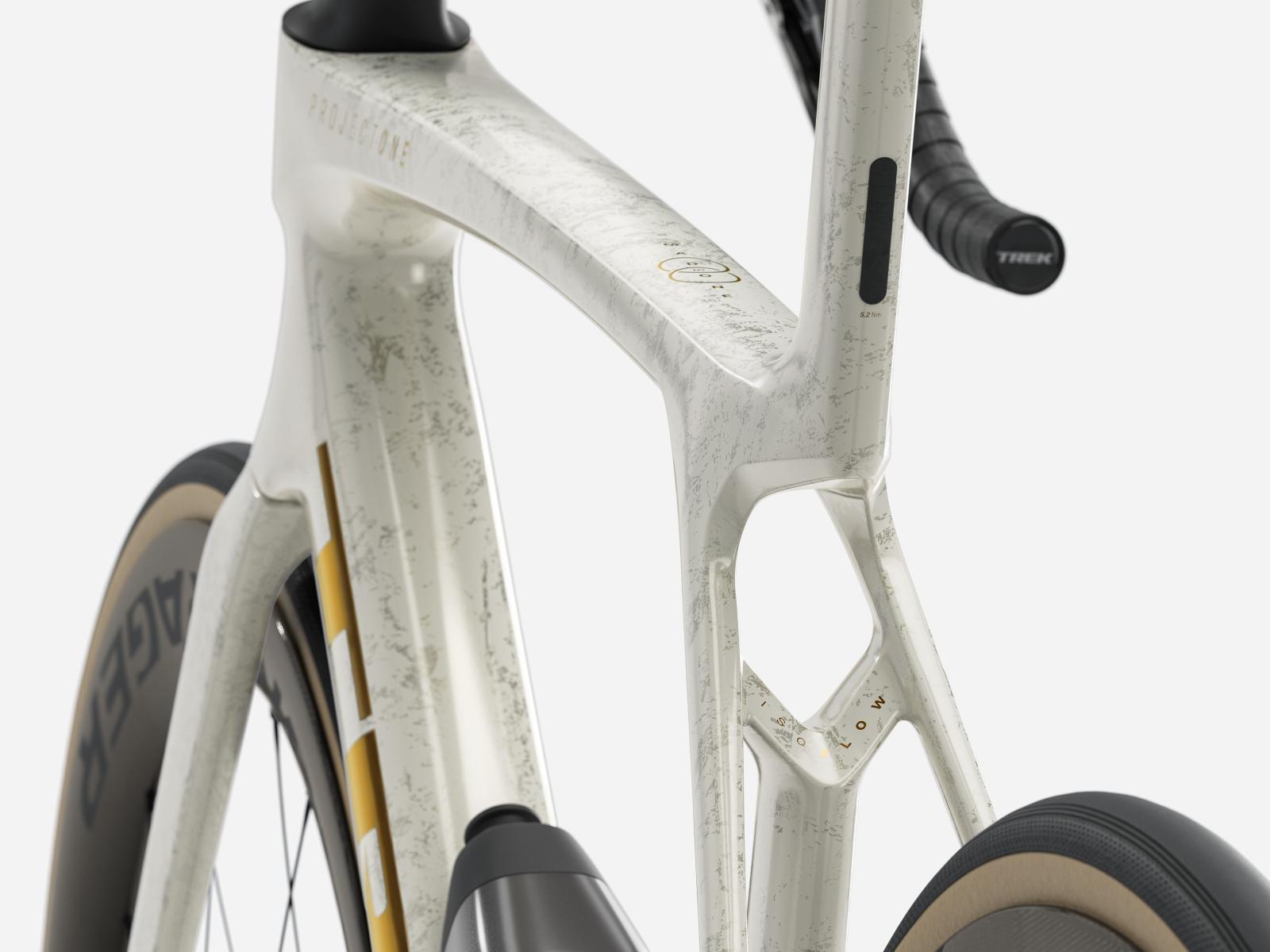 Einen unglaublich leichten, aerodynamisch optimierten Rahmen aus unserem besten 900 Series OCLV Carbon samt IsoFlow-Komforttechnologie und Watt-sparenden RSL Aero Trinkflaschen und Flaschenhaltern. Dazu gibts SRAMs neuesten ultraleichten RED AXS E1 Antrieb samt Powermeter für datengestützte Trainingsrunden, während das verbaute, weit verbreitete Universalschaltauge (UDH) die Ersatzteilbeschaffung erleichtert. Abgerundet wird die Ausstattung von schlauchlosen Bontrager Aeolus RSL 51 Carbonlaufrädern und einer einteiligen Trek Aero RSL Lenker/Vorbau-Einheit.