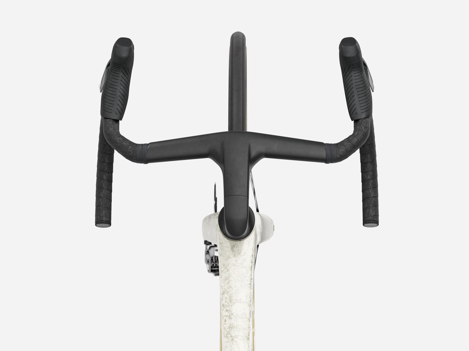 Lenker: Trek Aero RSL Road integrierte Lenker/Vorbau-Einheit, OCLV Carbon, Race Fit, 80 mm Reach, 124 mm Drop, 39 cm Oberlenkerbreite, 42 cm Unterlenkerbreite, 100 mm Vorbaulänge