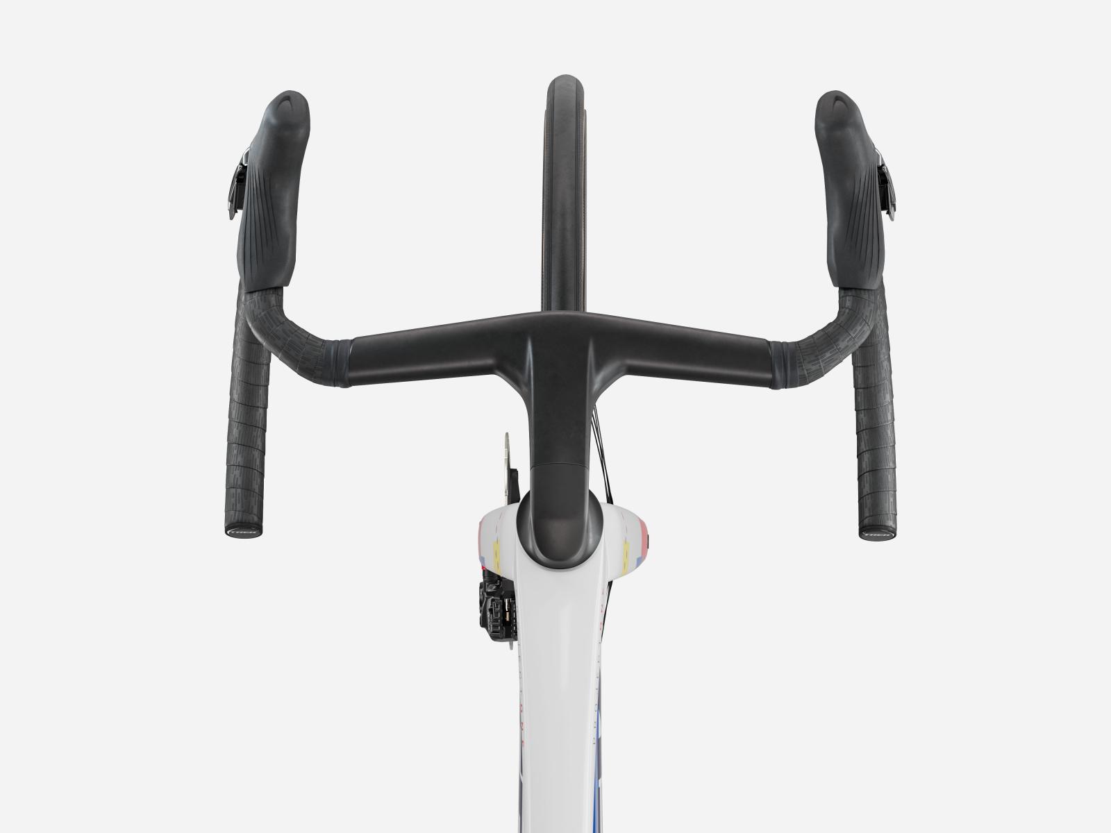 Die neue einteilige Lenker/Vorbau-Einheit ist leichter, aerodynamischer und ergonomischer als die Vorgängerversion. Darüber hinaus ermöglicht der im Vergleich zum Unterlenker 3 cm schmalere Oberlenker die Anpassung der Positionierung auf dem Bike, um entweder in der Oberlenkerposition von einer besseren Aerodynamik zu profitieren oder im Unterlenker mehr Kraft aufs Pedal zu bringen.