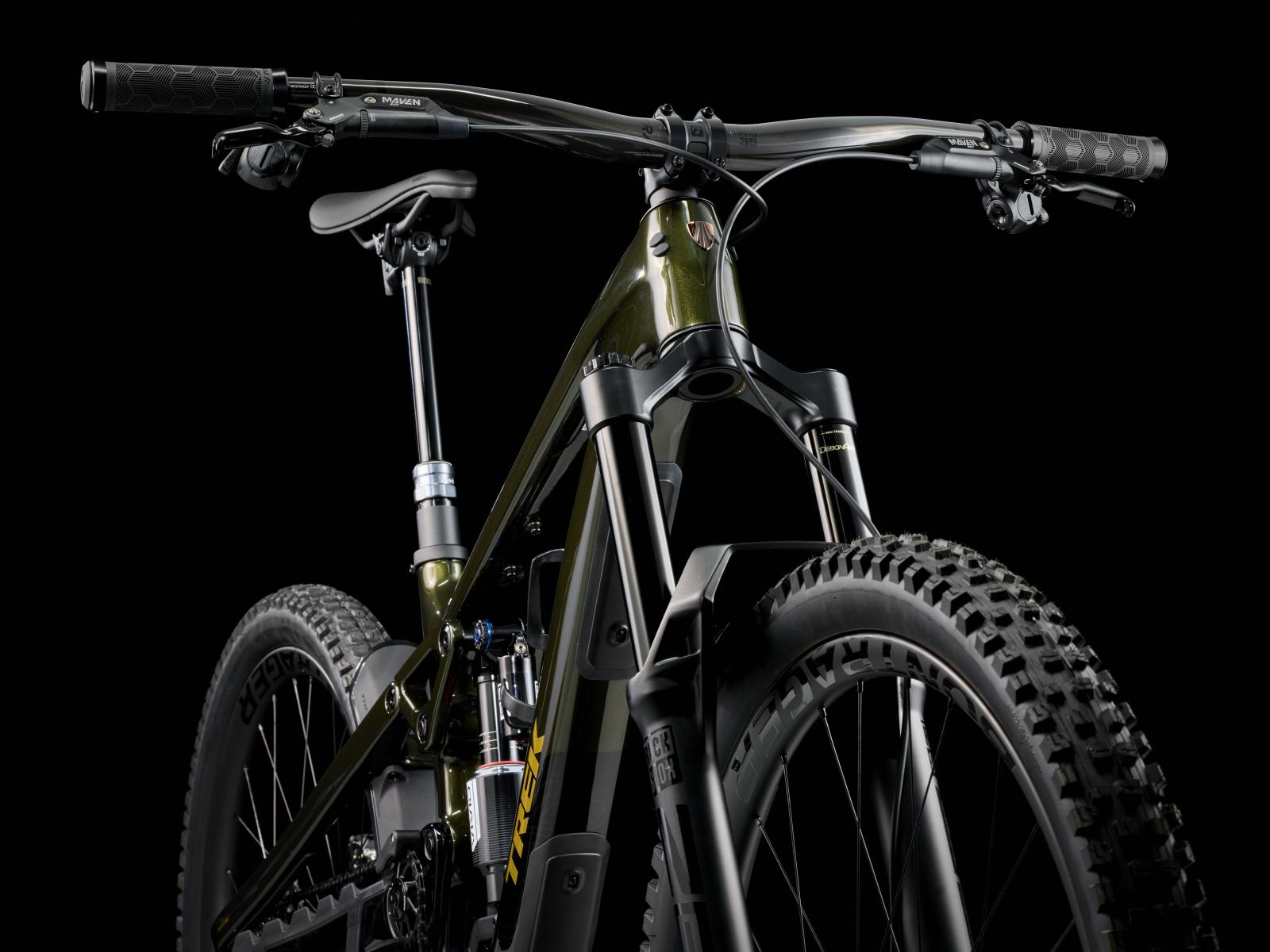 Einen Rahmen aus OCLV Mountain Carbon mit High-Pivot-Fahrwerk sowie Rahmenstaufach, 170 mm vorderen und hinteren Federweg dank RockShox ZEB Ultimate Federgabel mit DebonAir Federung und Charger 3.1 RC2 Dämpfung sowie RockShox Vivid Ultimate Hinterbaudämpfer. Die drahtlose SRAM XX Eagle AXS Transmission schaltet selbst unter Last knackig und präzise, während eine Bontrager Line Variosattelstütze deine Bewegungsfreiheit auf dem Bike ungemein erhöht. Die Bontrager Line Pro 30 Tubeless-Ready-Carbonlaufräder (29" vorn, 27,5" hinten) samt Rapid Drive Naben machen das Bike bereit für vielseitiges Terrain.