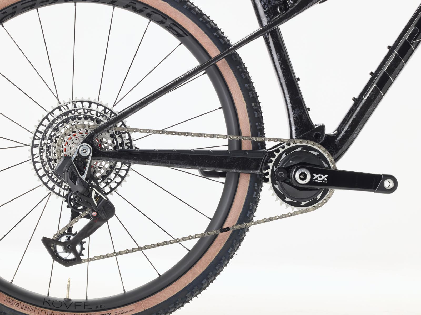 Einen federleichten Rahmen aus hochmoduligem SLR OCLV Mountain Carbon mit moderner XC-Geometrie. Außerdem bekommst du eine RockShox SID SL Ultimate 110-mm-Federgabel mit DebonAir-Federung und Charger Race Day Dämpfung und einen RockShox SIDLuxe IsoStrut 80-mm-Hinterbaudämpfer – natürlich komplett mit Remote-Lockout. Eine ultraleichte, komplett drahtlose elektronische SRAM XX SL AXS 12fach-Transmission, Bontrager Kovee RSL Carbonlaufräder, eine integrierte Bontrager RSL Lenker/Vorbau-Einheit aus Carbon, eine FOX Transfer SL Variosattelstütze und hydraulische SRAM Motive Ultimate 4-Kolben-Scheibenbremsen runden das Ausstattungspak