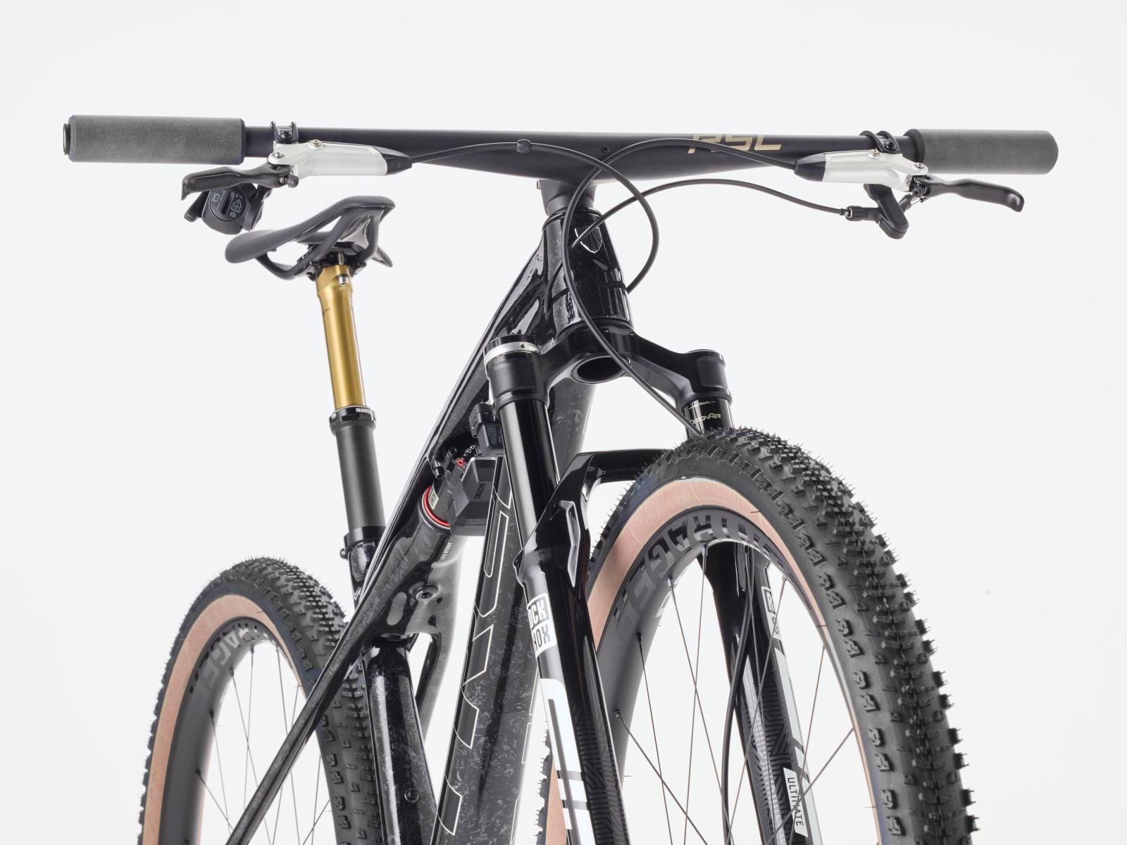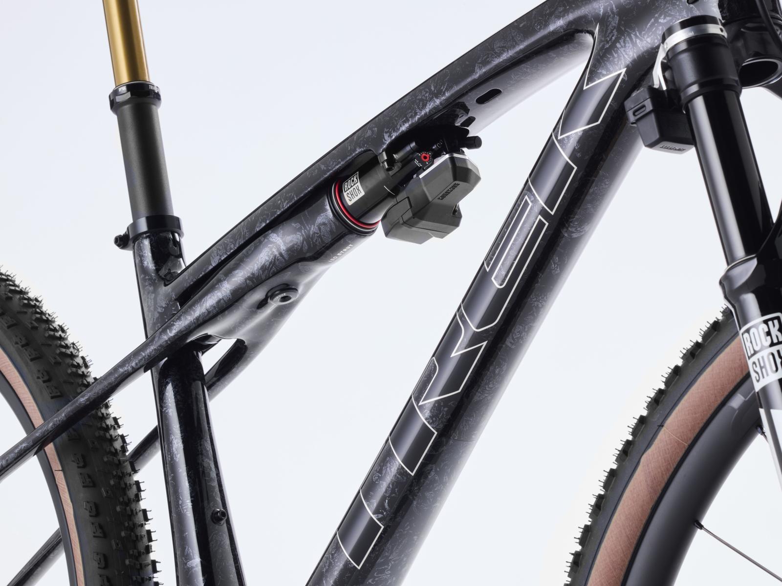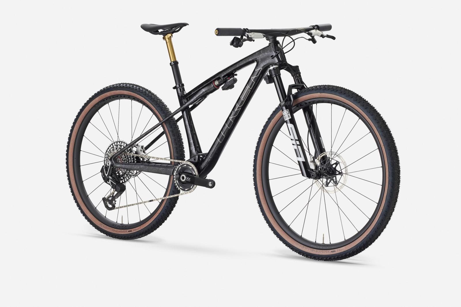 Einen federleichten Rahmen aus hochmoduligem SLR OCLV Mountain Carbon mit moderner XC-Geometrie. Außerdem bekommst du eine RockShox SID SL Ultimate 110-mm-Federgabel mit DebonAir-Federung und Charger Race Day Dämpfung und einen RockShox SIDLuxe IsoStrut 80-mm-Hinterbaudämpfer – natürlich komplett mit Remote-Lockout. Eine ultraleichte, komplett drahtlose elektronische SRAM XX SL AXS 12fach-Transmission, Bontrager Kovee RSL Carbonlaufräder, eine integrierte Bontrager RSL Lenker/Vorbau-Einheit aus Carbon, eine FOX Transfer SL Variosattelstütze und hydraulische SRAM Motive Ultimate 4-Kolben-Scheibenbremsen runden das Ausstattungspak