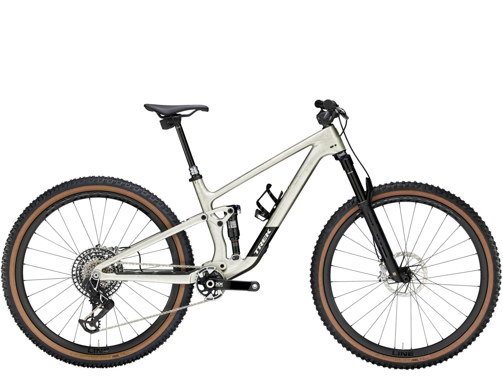 Einen Rahmen aus OCLV Mountain Carbon mit vierfach verstellbarem Mino Link an der unteren Dämpferaufnahme zur Feinanpassung der Rahmengeometrie und des Hebelverhältnisses des Fahrwerks. Eine RockShox Pike Ultimate Gabel mit 130 mm Federweg, DebonAir Luftfeder und Charger 3.1 RC2 Dämpfung sowie einen RockShox Deluxe Ultimate RCT Hinterbaudämpfer mit 120 mm Federweg. Abgerundet wird die Ausstattung von einer ultraleichten drahtlosen SRAM XX AXS Transmission, hydraulischen SRAM Level Ultimate 4-Kolben-Scheibenbremsen, einer RockShox Reverb AXS Variosattelstütze und Bontrager Line Pro 30 Tubeless-Ready-Carbonlaufrädern.